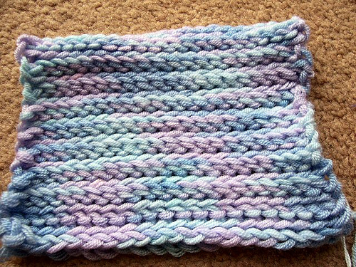 Basketweave(iF3,B3) across row for 4 rows. Then (B3,iF3) across row for 4 rows (Rows contain a multiple of 6 stitches.) Side 1: